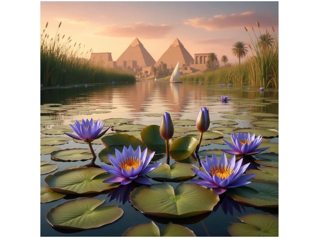 Starożytne legendy i tradycje alchemiczne przypominają, że Niebieski Lotos inspirował symbolikę niebieskiego koloru spokoju w świątyni Karnak, gdzie reprezentował ideał równowagi życiowej, klarowności i wewnętrznego pokoju.
